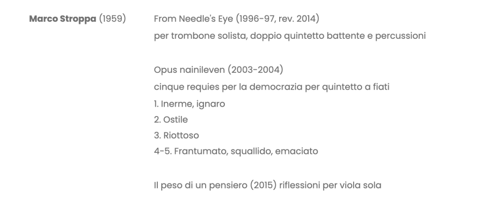 Il concerto è dedicato a Marco Stroppa, docente del workshop di composizione DeMusica 2025. Compositore, ricercatore e didatta, Stroppa ha indagato il suono da molteplici prospettive, sperimentandone le potenzialità ad esempio in relazione all’elettronica, alla spazializzazione o ai processi percettivi.